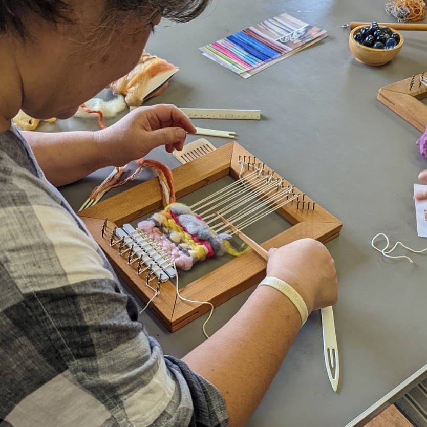 草木で染めた絹の糸、絹真綿のやわらかさ、木枠の中に生まれる余白や重なりを見つめながら、15〜20cmほどの小さな壁掛けへと仕上げていきます。